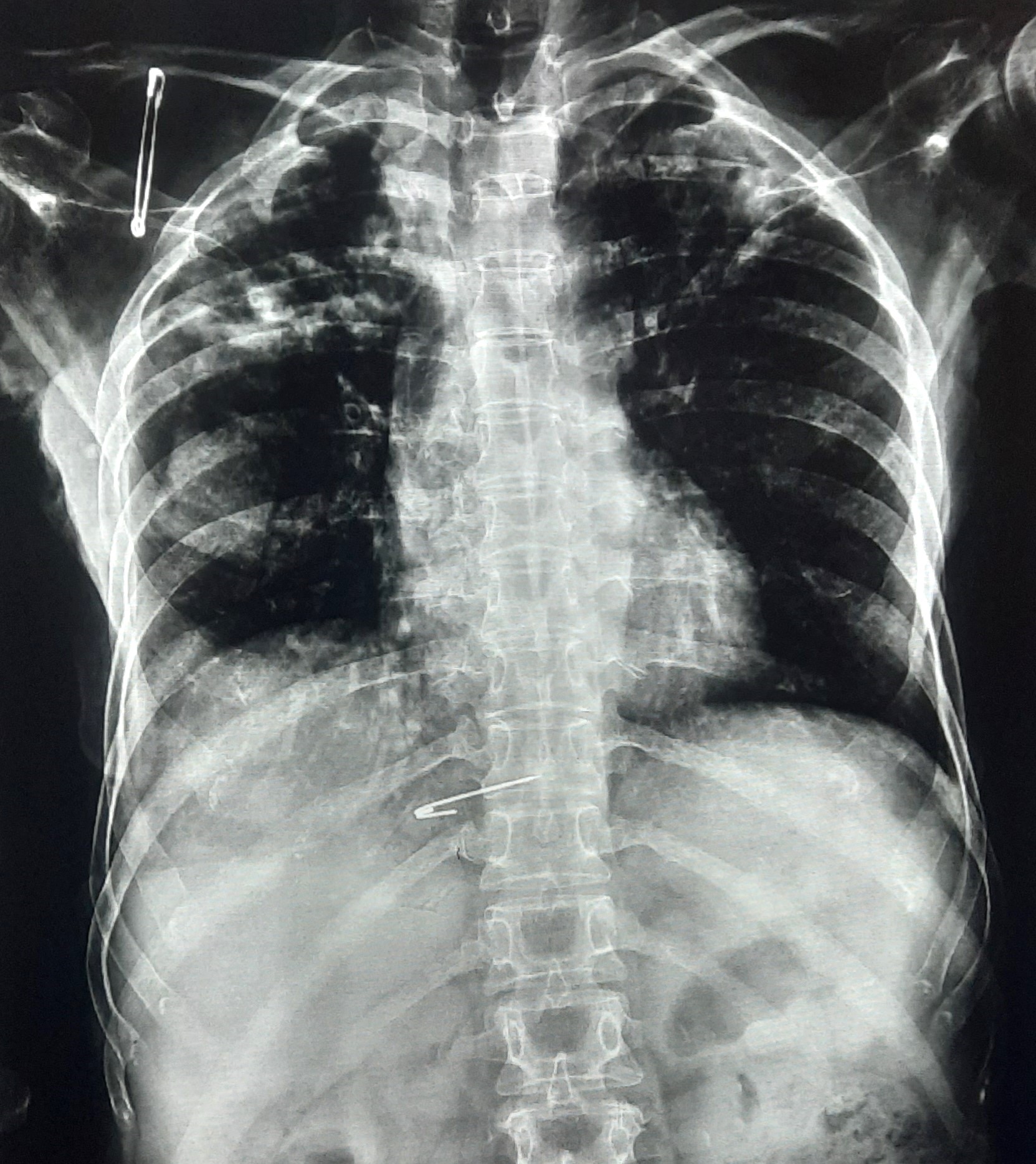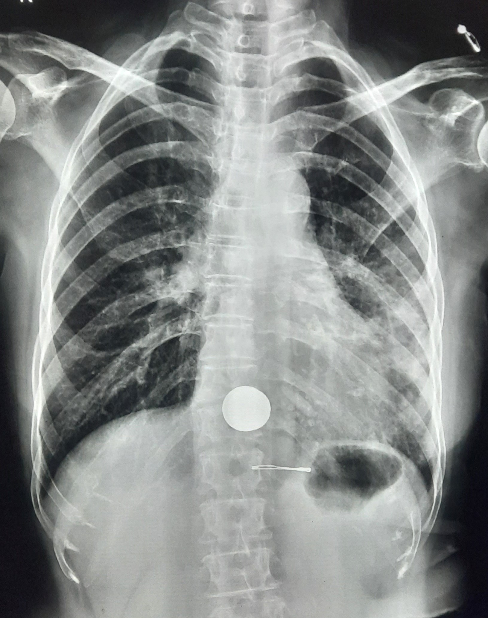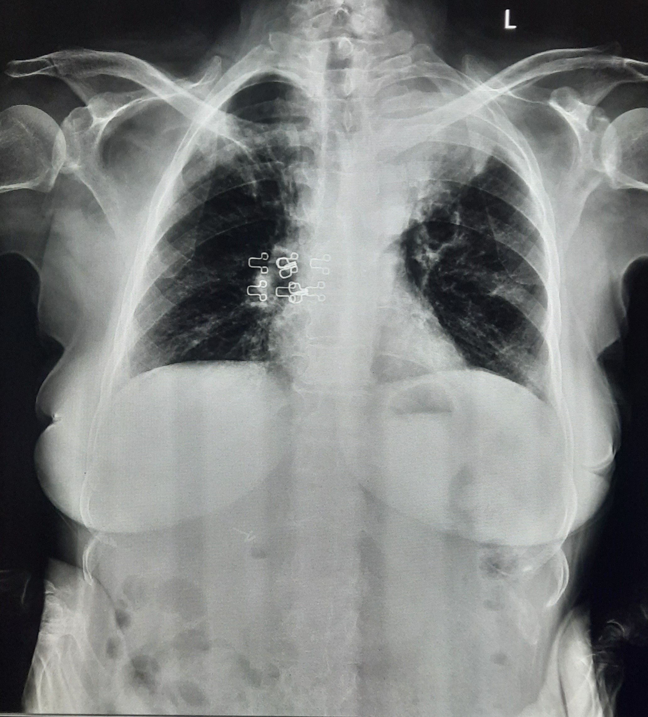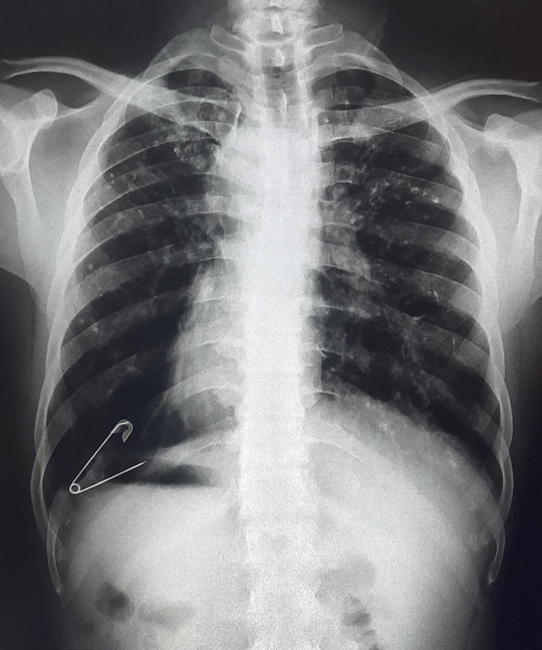 Right CP Angle Blunting Present With Right Upper Zone/ Mid Zone Ill-Defined Opacity With Left Upper Zone Infiltration Present | ? |
