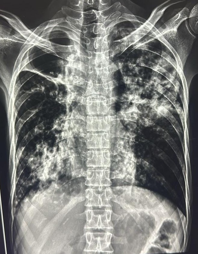 TB Case (Confirmed) | Bilateral Right Middle zone/ Upper Zone/ Lower zone & Left Middle Zone/ Lower Zone Lung Infiltration | Abnormality visible on x-ray |