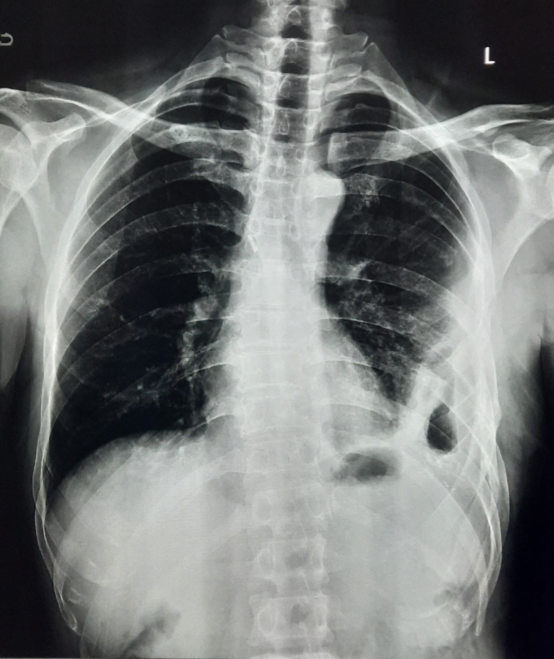 Final Diag : EPTB (CxR- Left Sided Loculated Hydropneumothorax With Pleural Fibrosis) |