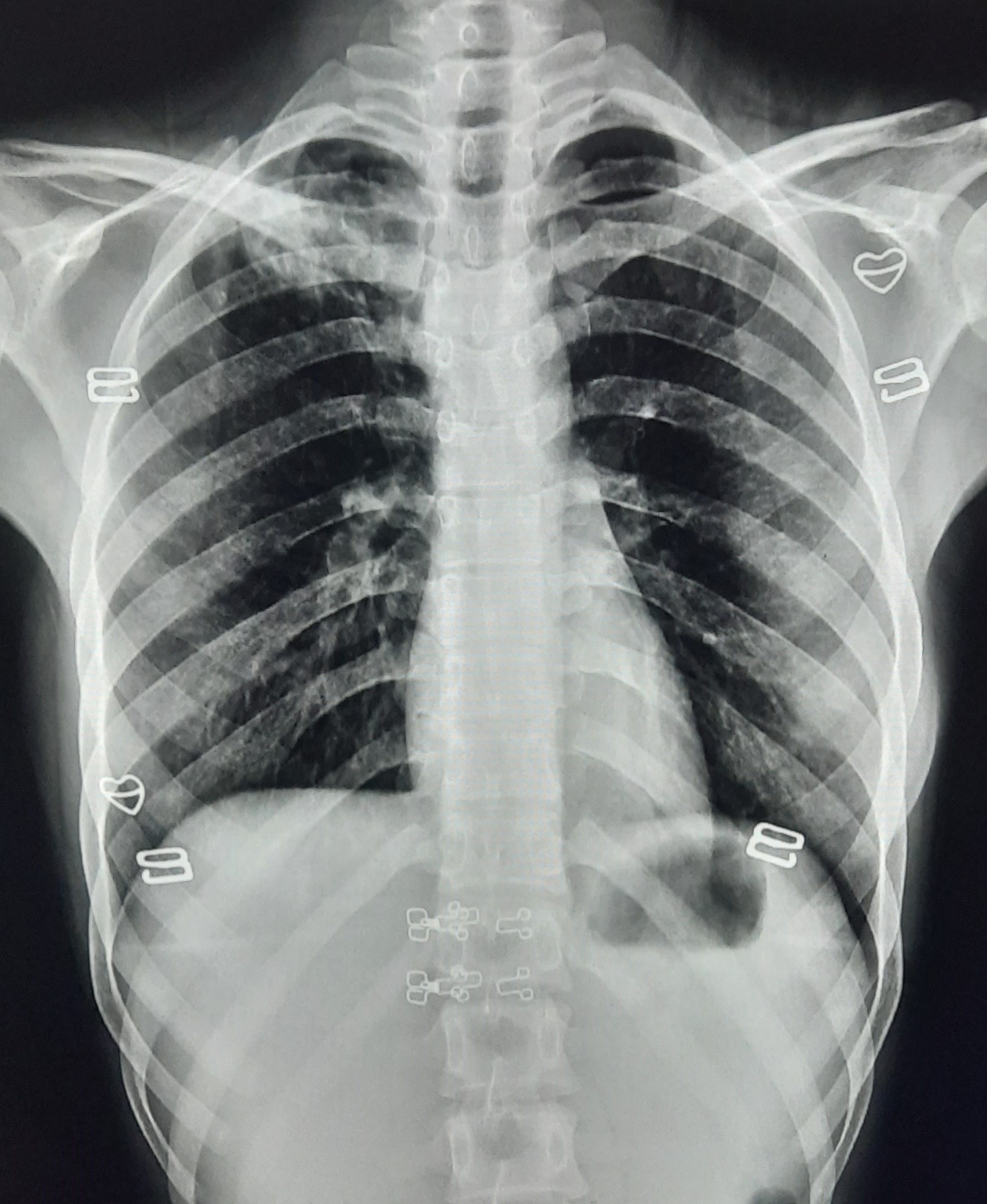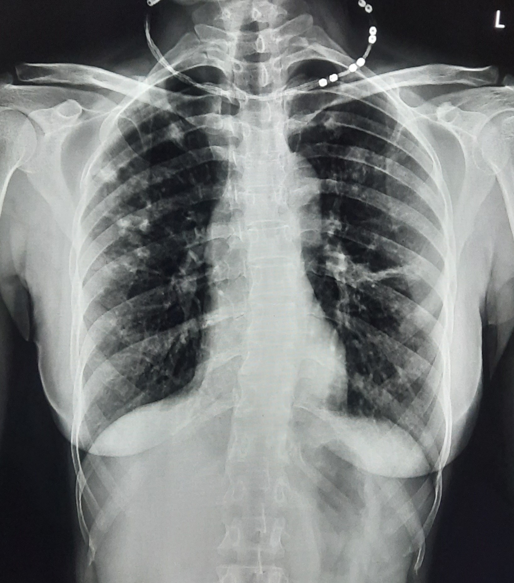 Non-TB Case (Confirmed) | Bilateral Mid Zone & Lower Zone Reticular shadows Present & Sparium Bilateral Upper zone | Abnormality visible on x-ray |