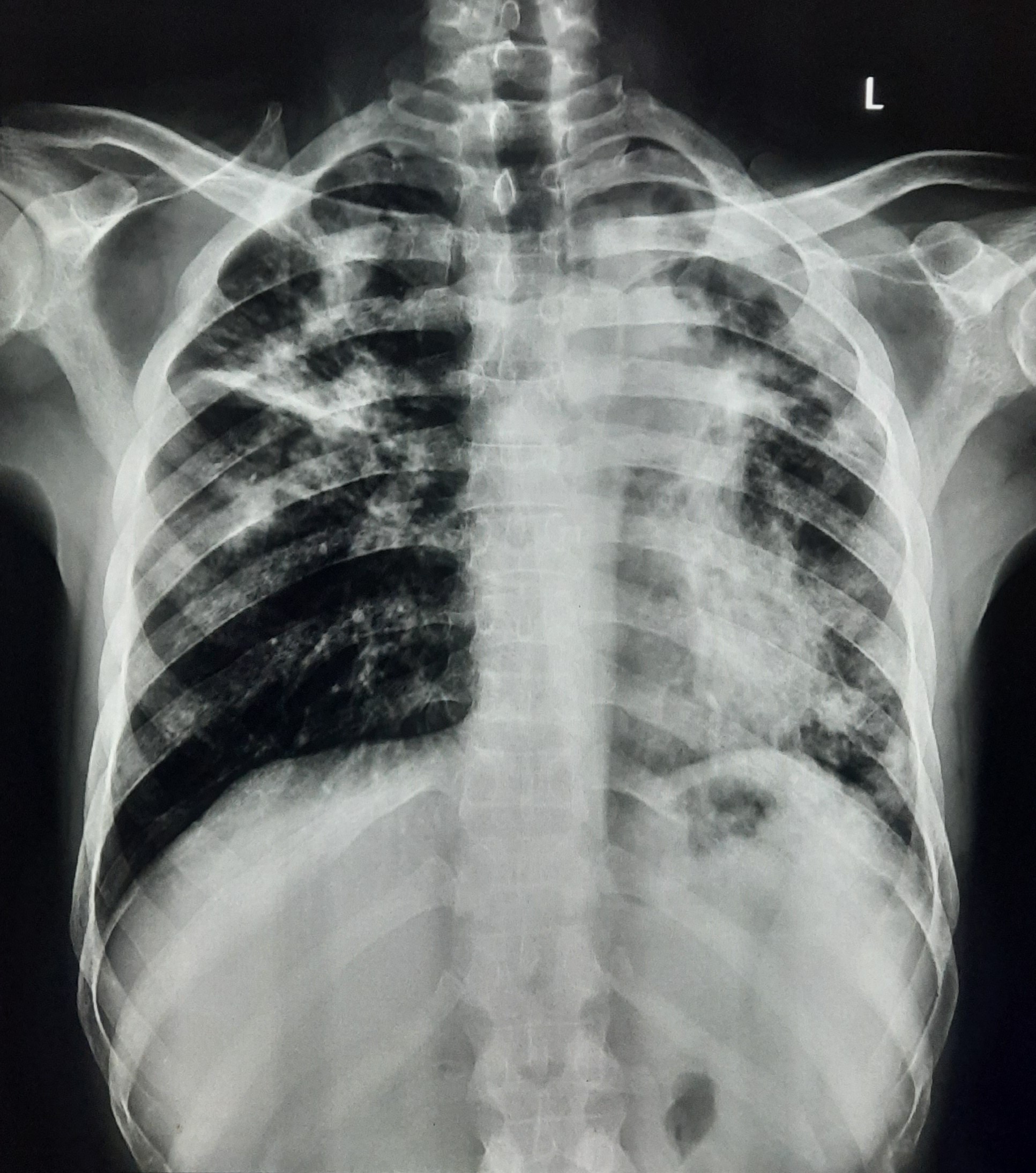 TB Case (Confirmed) | Bilateral Upper Zone& Mid Zone TB Infiltration | Abnormality visible on x-ray |