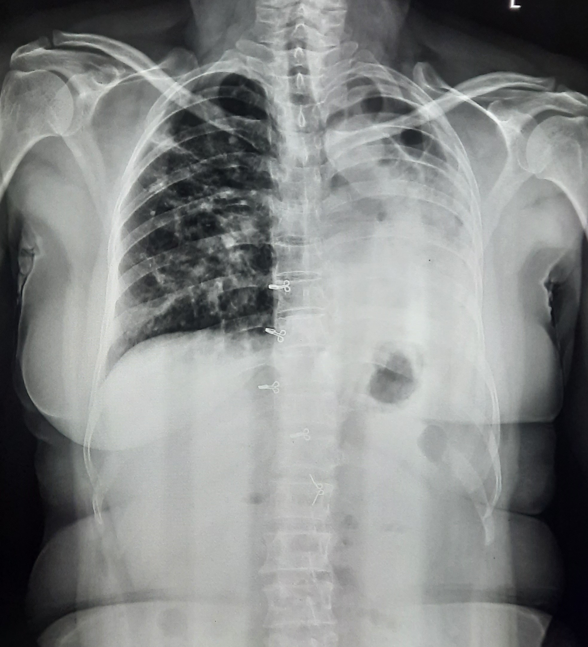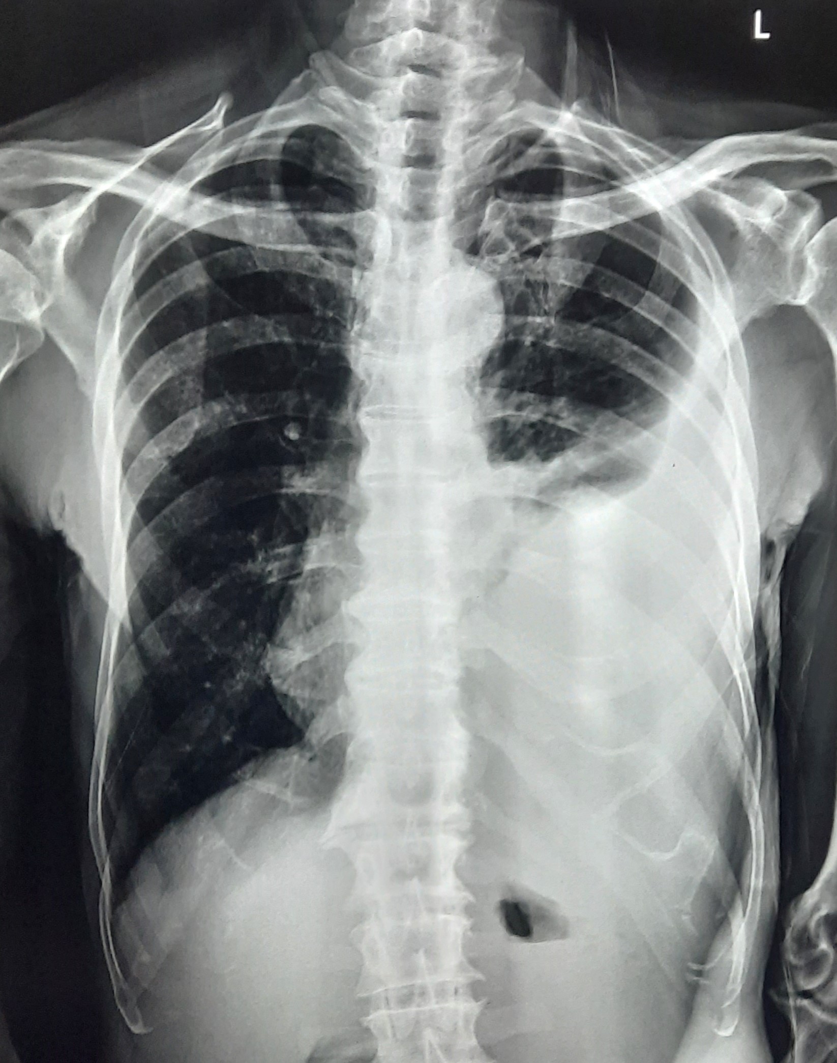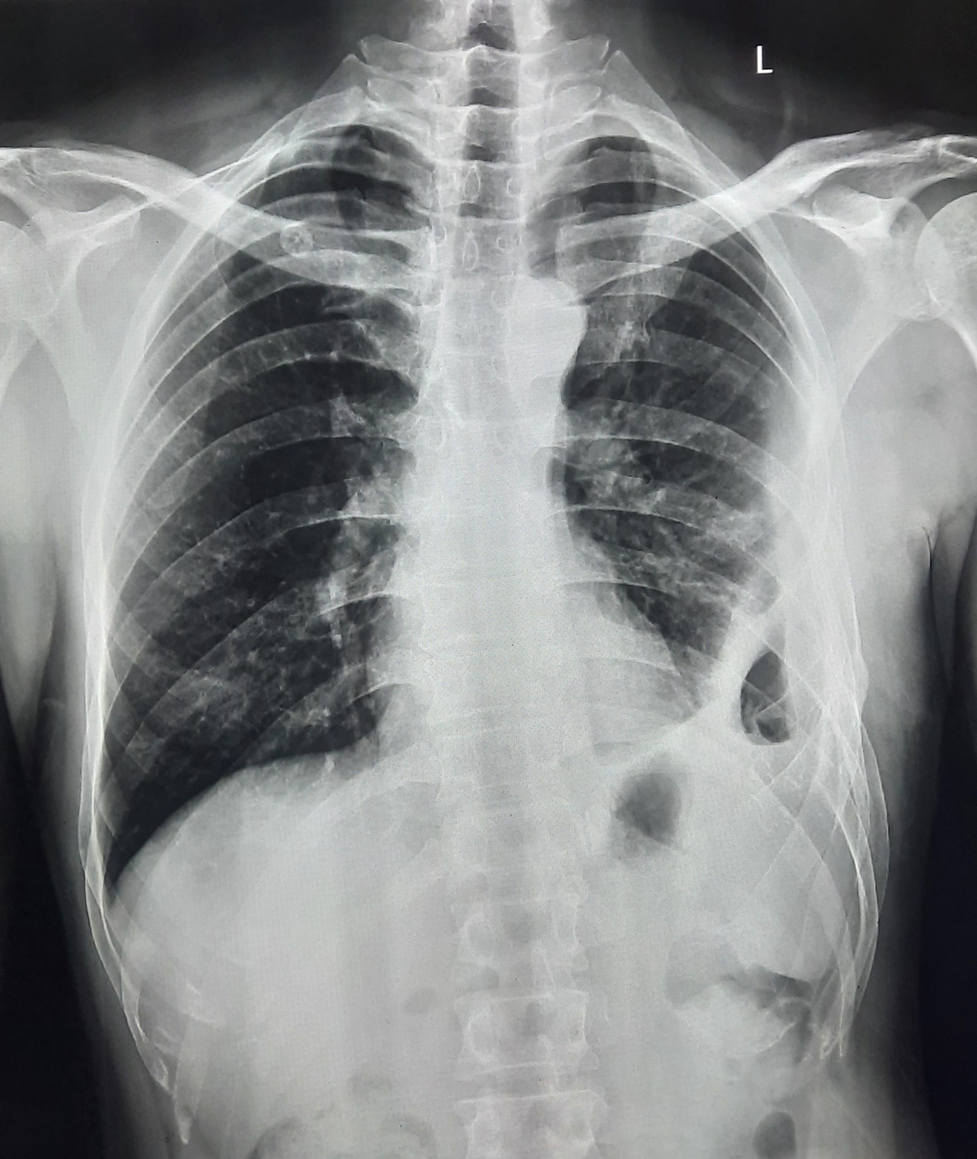 Non-TB Case (Confirmed) | Left Hydropneumothorax With Pleural Fibrosis? | Abnormality visible on x-ray |
