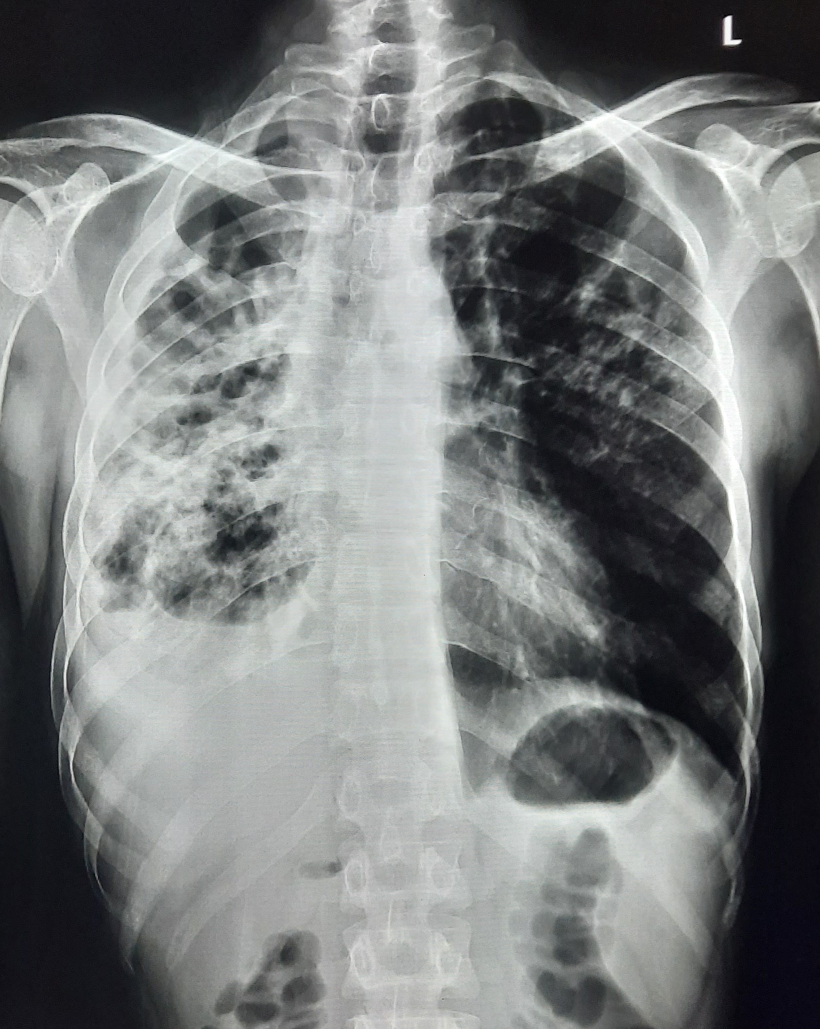 TB Case (Confirmed) | Multiple Right Side With Bilateral Infiltration | Abnormality visible on x-ray |