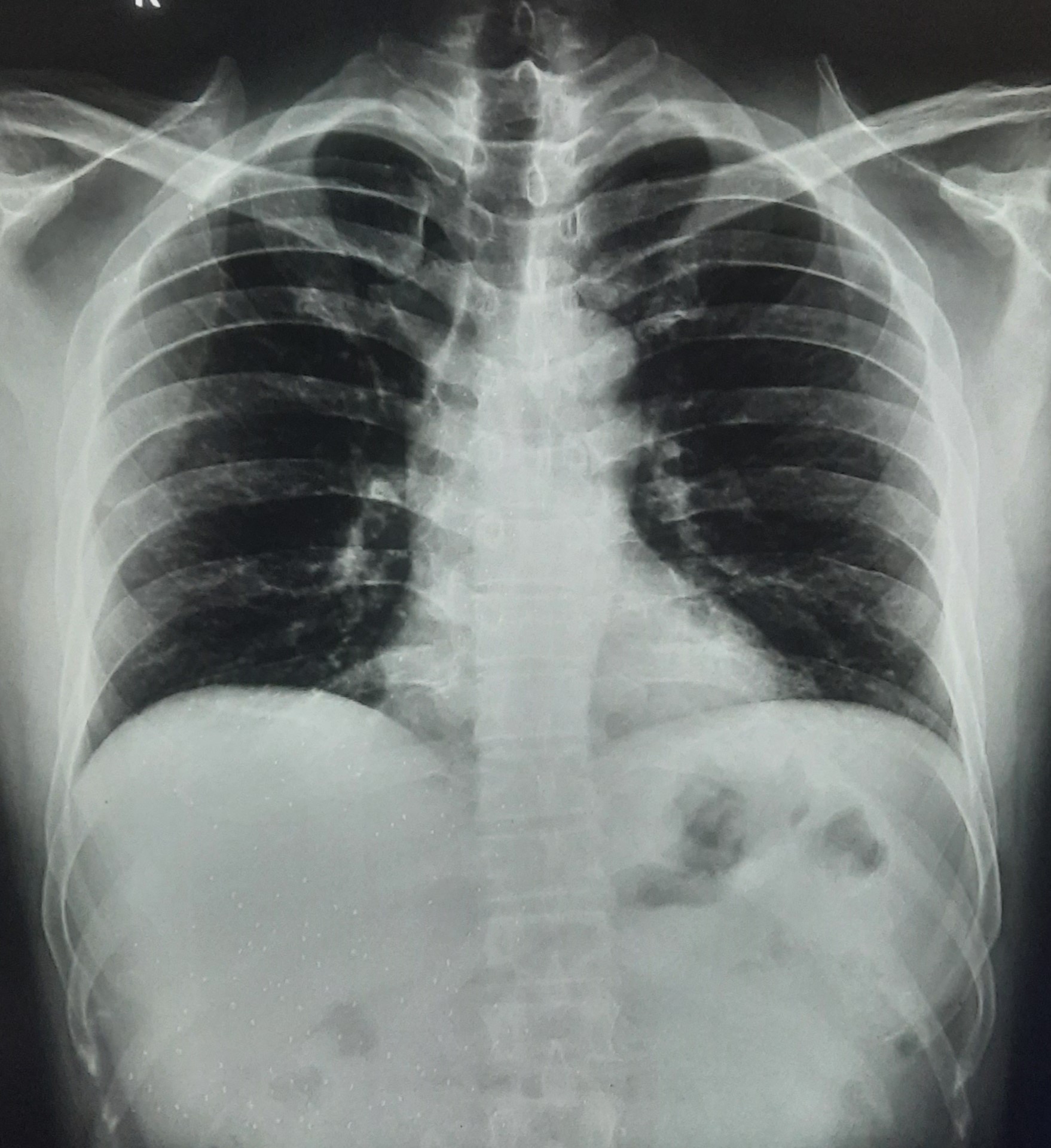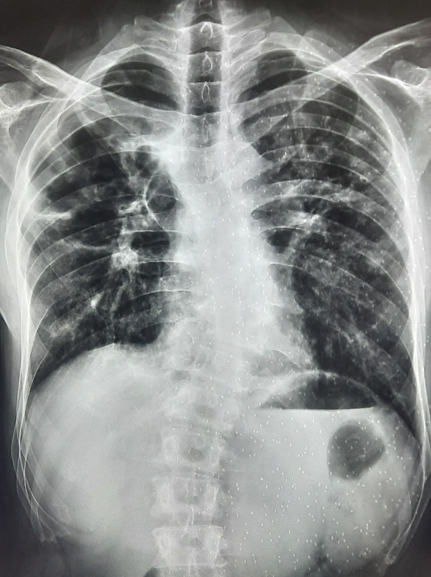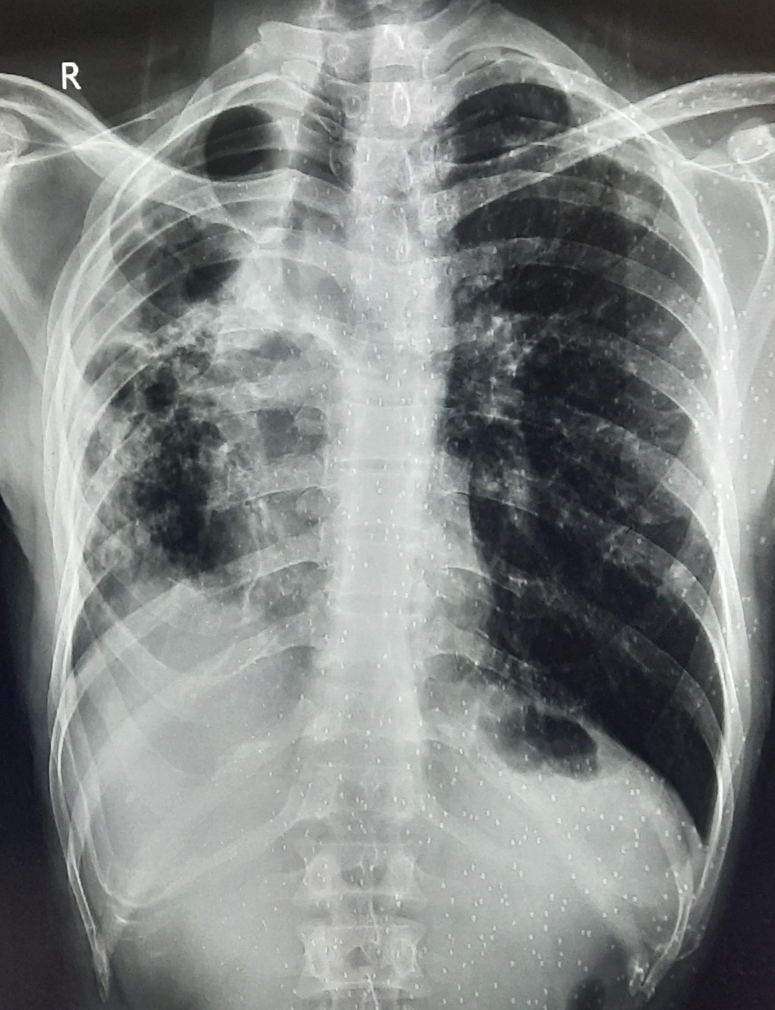 Final Diag : Pulmonary Tuberculosis (CxR- Right Middle Zone Cavity) |