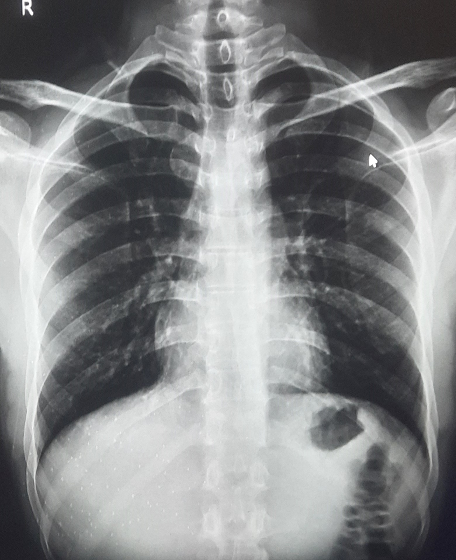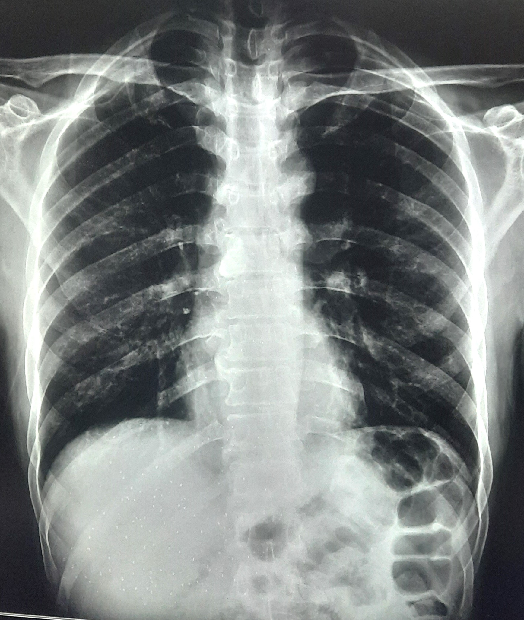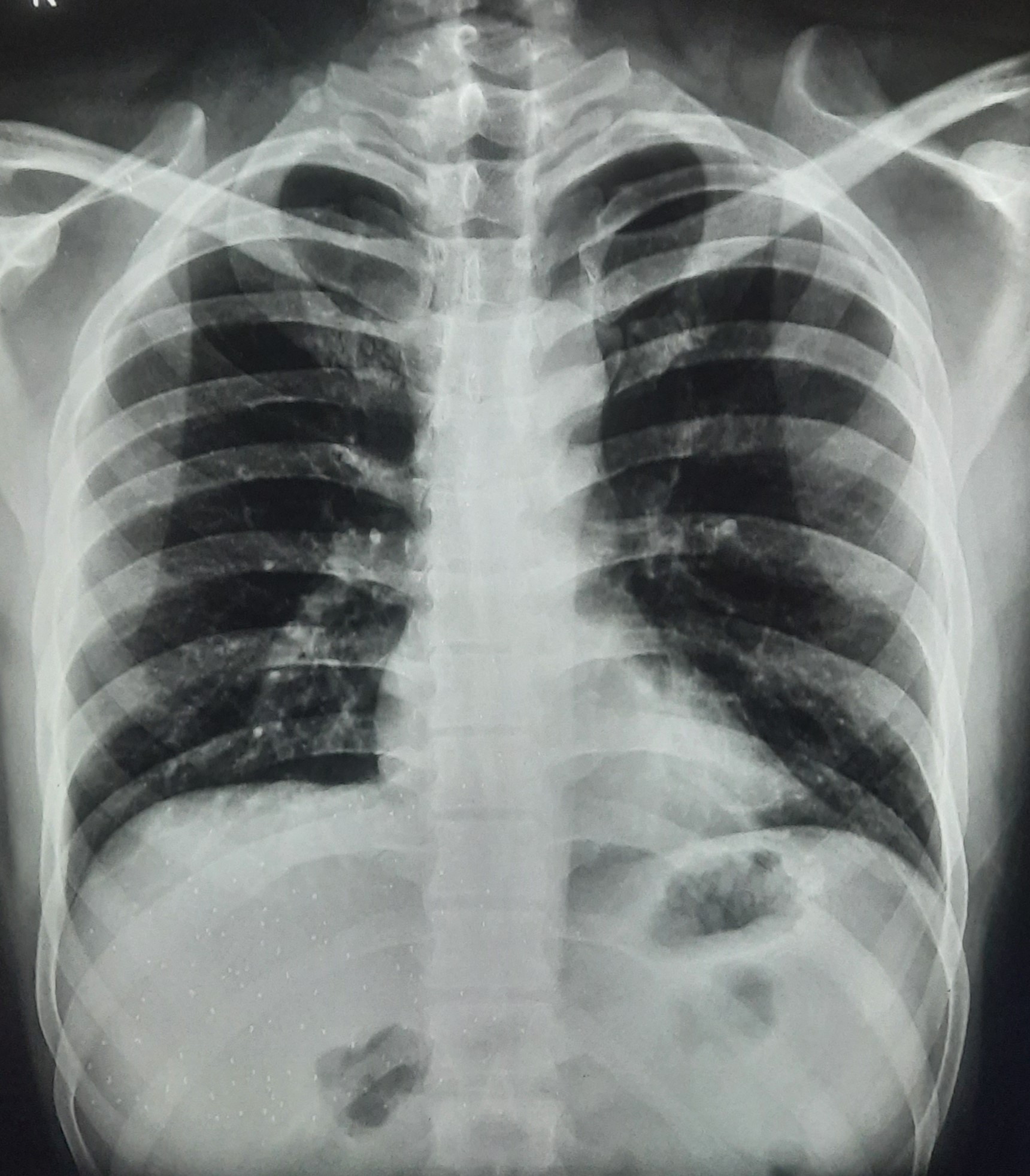 Final Diag : Pulmonary Tuberculosis (CxR- Right Middle Zone Cavity) |