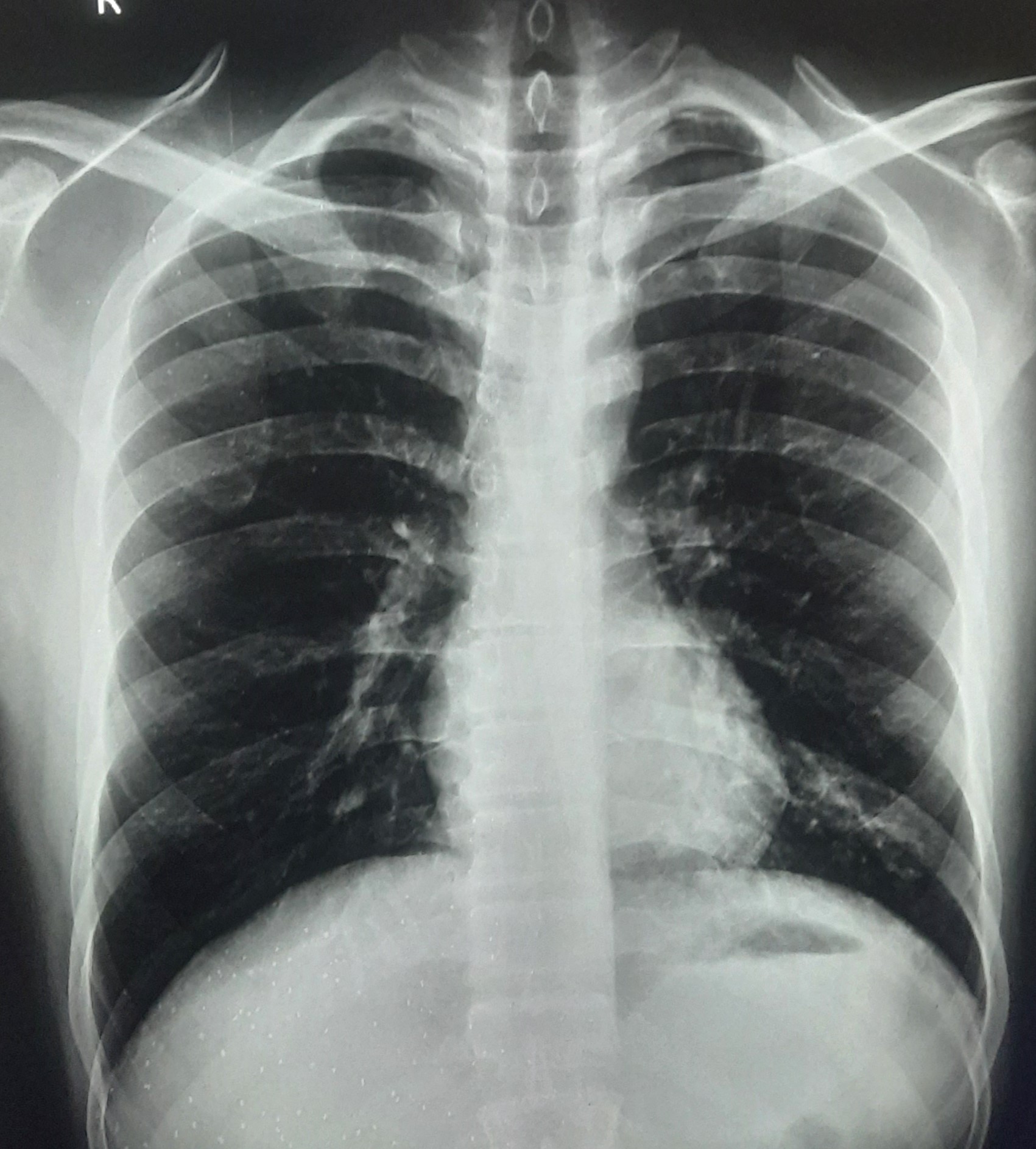 Non-TB Case (Confirmed) | RETICULAR OPACITIES NOTED IN PREDOMINANTLY IN UPPER ZONE OF RIGHT LUNG PARENCHYMA | Abnormality visible on x-ray |