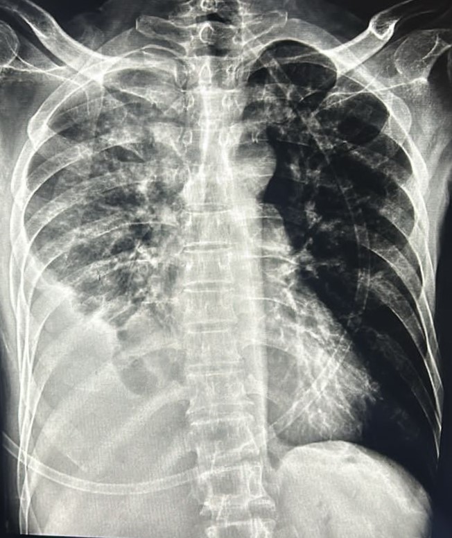 Non-TB Case (Confirmed) | Faty Liver With Left Middle Zone, Lower Zone Consolidation With Symptomatic Effusion | Abnormality visible on x-ray |